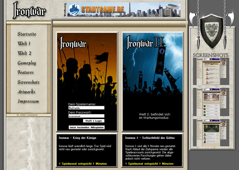 Heutzutage ist die Palette an Online-Games im Internet grenzenlos geworden. Das Spiel "Ironwar" gehört mittlerweile zu einem der besten Strategiespiele im Internet. Wer auf Fantasie und Geschichte steht, wird mit diesem Browsergame sicherlich seine helle Freude haben.Das Spiel ist eine reise zu unzähligen Völkern. Schon beim Start des Spieles merkt man schnell die Genauigkeit, sowie den Aufbau des Spieles. es wurde aufwenig in den letzten Jahren aufgerüstet, um so noch mehr Spielern bessere Qualität beim Spielen zu geben. Man hat des Gefühl, als wenn die Geschichte des Online-Games jetzt gerade geschiet. Handlungen, kommende Ereignisse oder auch plötzliche Schicksalsaspekte bringt dieses Browergame mit sich. Man kann es direkt über den Browser spielen.